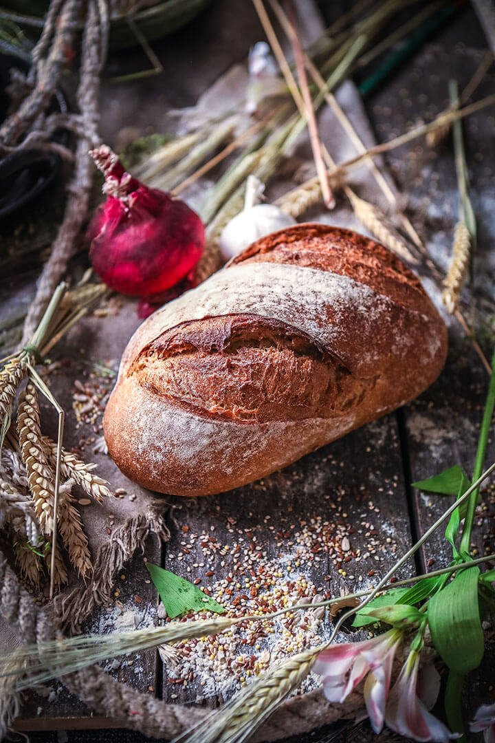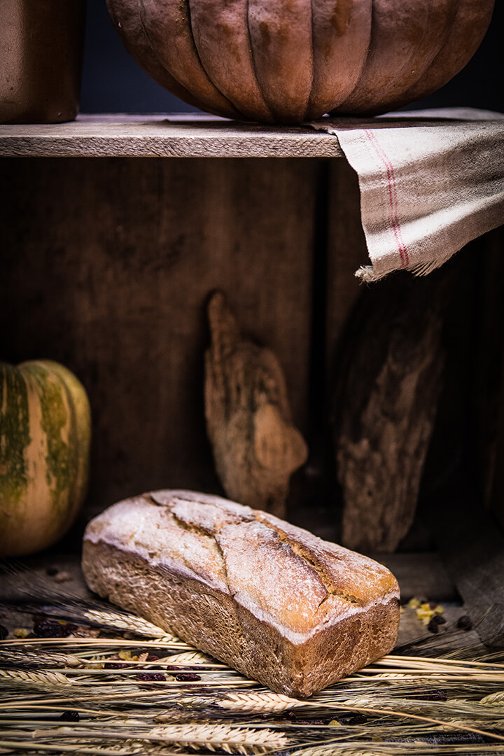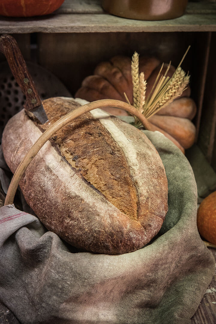 Le Pain Champêtre est un pain à conçu avec des farines semi-complètes de blé, de seigle, d’avoine et de sarrasin. Sa croûte est sertie des graines et des flocons que l’on retrouve de manière subtile dans la mie. C’est un pain riche en arômes, avec une belle cuisson à cœur. Ses alvéoles sont nacrées, de différentes tailles. Sa mâche alterne entre le fondant de la mie et le léger croquant…Le pain Grand Épeautre