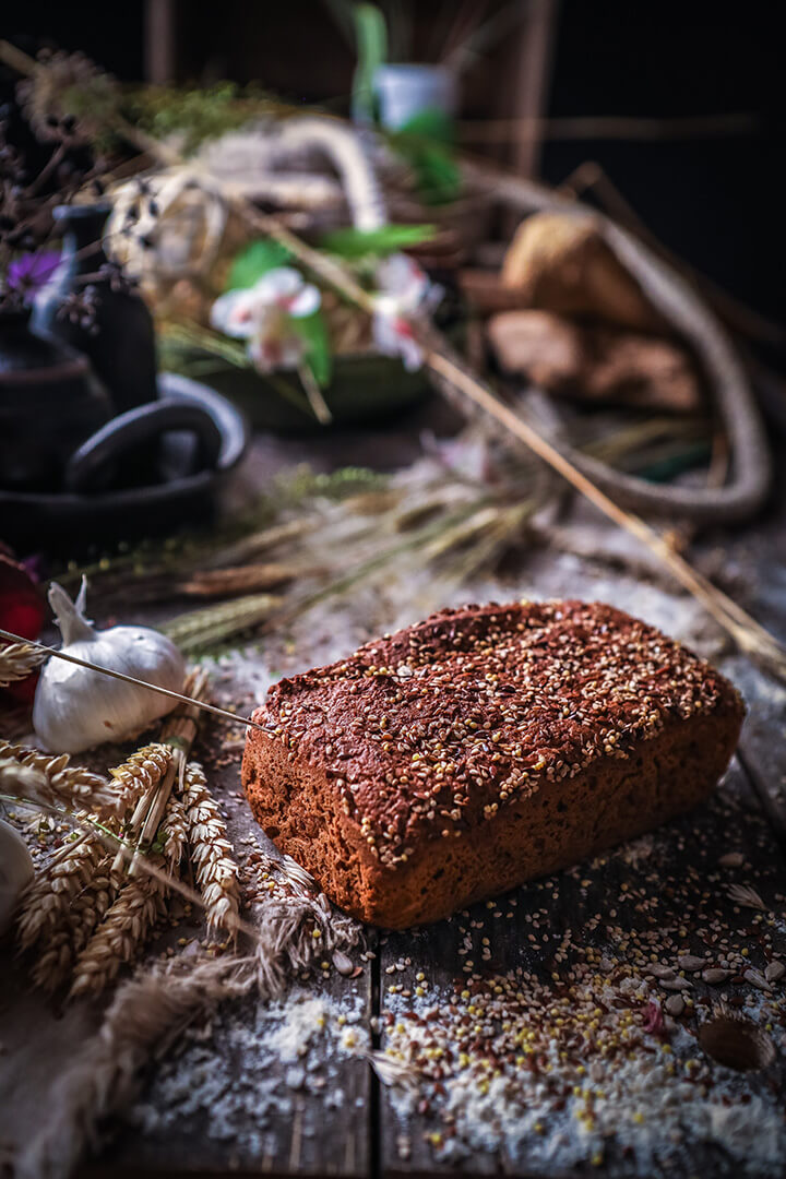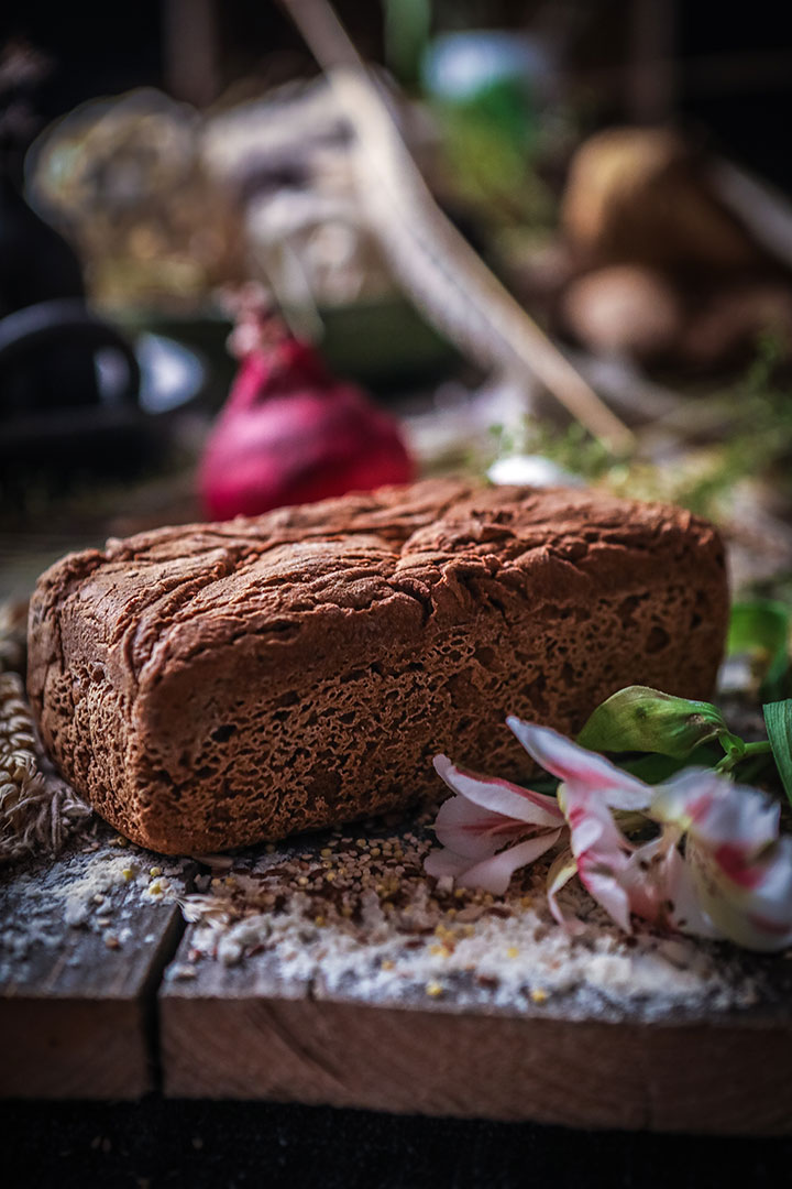 Le Pain Pur Sarrasin est un pain moulé, aux nuances grises. La farine de sarrasin ne contenant pas de gluten, la mie est de fait très resserrée. C’est un pain aux arômes puissants, corsés, avec une touche d’acidité procurée par le levain de sarrasin. La référence aux saveurs de la galette bretonne sera une évidence à la dégustation. Le Pain Pur Sarrasin est préparé avec de la farine de sarrasin…Le pain au Seigle