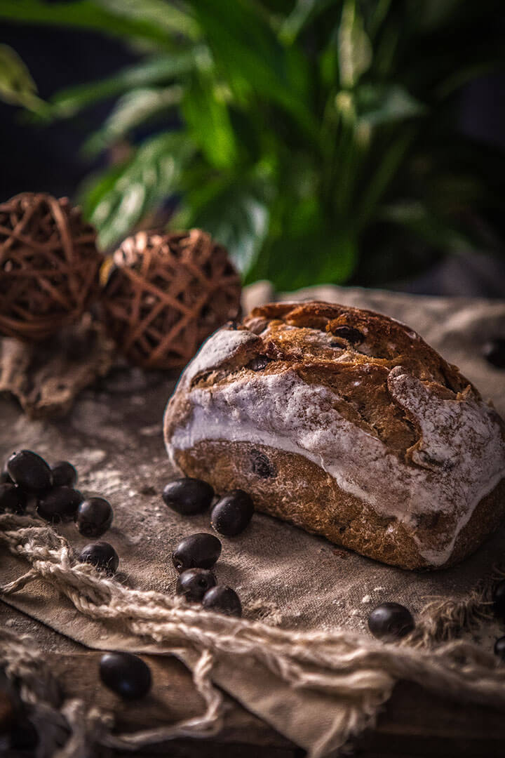 Généreusement garni d’un tiers de noix, ce pain est fabriqué à partir d’une base semi-complète. Sa mie se teinte d’une jolie couleur mauve dûe à la décoloration du brou de noix bio. C’est un pain gourmand et réconfortant qui donne la sensation de goûter à un gâteau. Le Pain aux noix est préparé avec de la farine écrasée à la meule de pierre, du levain naturel (sans aucun additif de…Le pain aux Olives