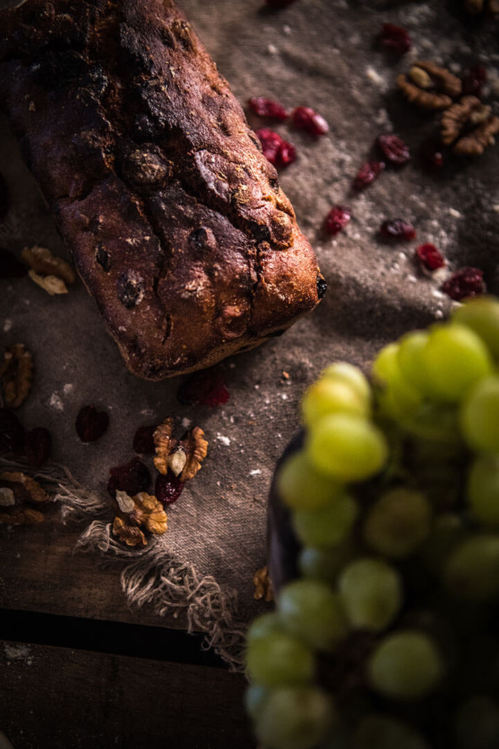 Le Pain Mi-figue Mi-raisin est d’abord un régal pour les yeux : c’est un pain moulé, fariné sur le dessus, qui prend très facilement des airs de gâteau de Noël. Une fois tranché, on découvre l’opulence de figues, de raisins et de noisettes entières qui prennent la vedette sur la farine de seigle ! A la dégustation, c’est un pain à la mie onctueuse, dont la mâche alterne entre le…