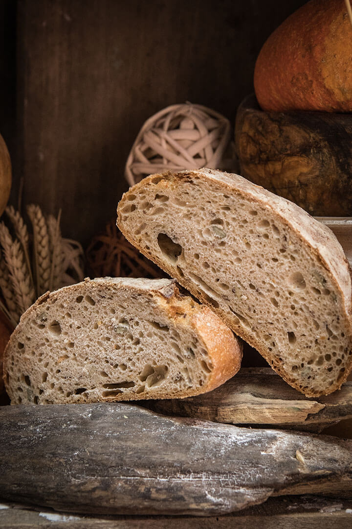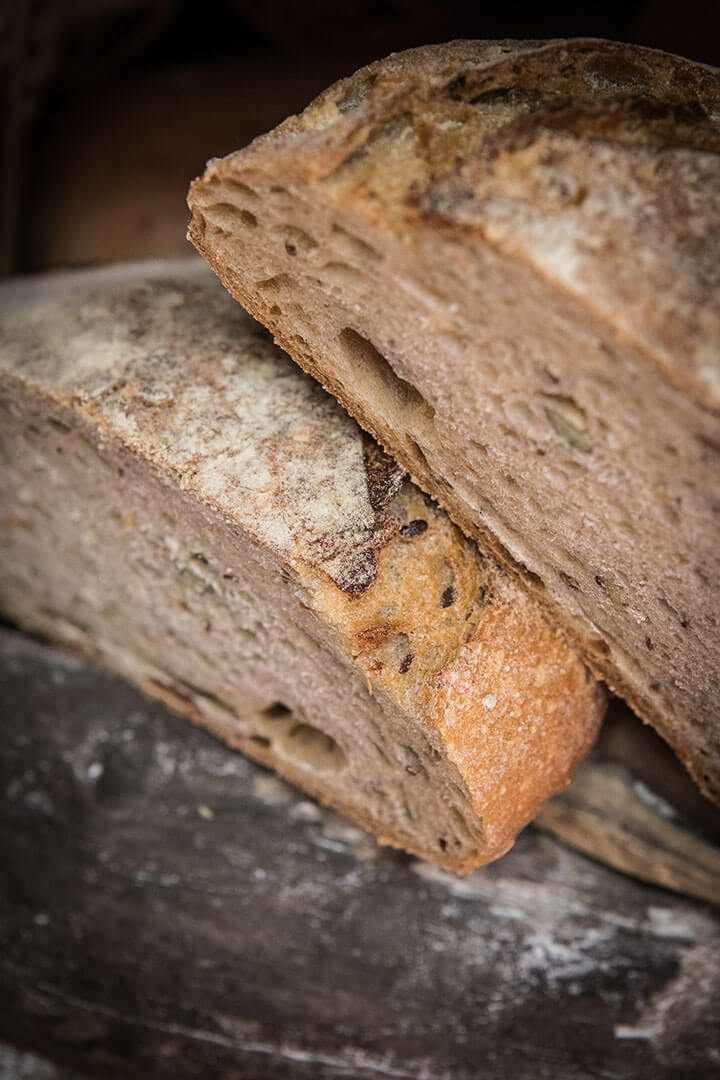 Le Pain aux céréales est préparé avec de la farine écrasée à la meule de pierre, du levain naturel (sans aucun additif de levure), de l’eau, juste ce qu’il faut de sel et beaucoup de câlins. Bien enrobé dans un torchon, au sec et à l’abri de la lumière, il peut se conserver jusqu’à quatre jours.