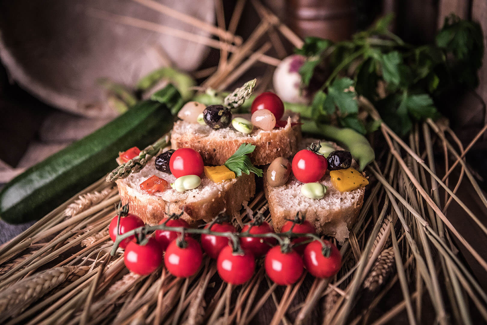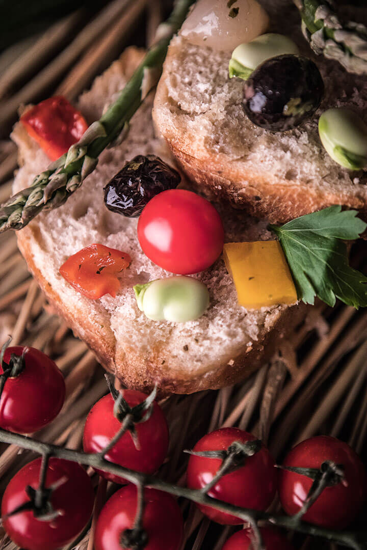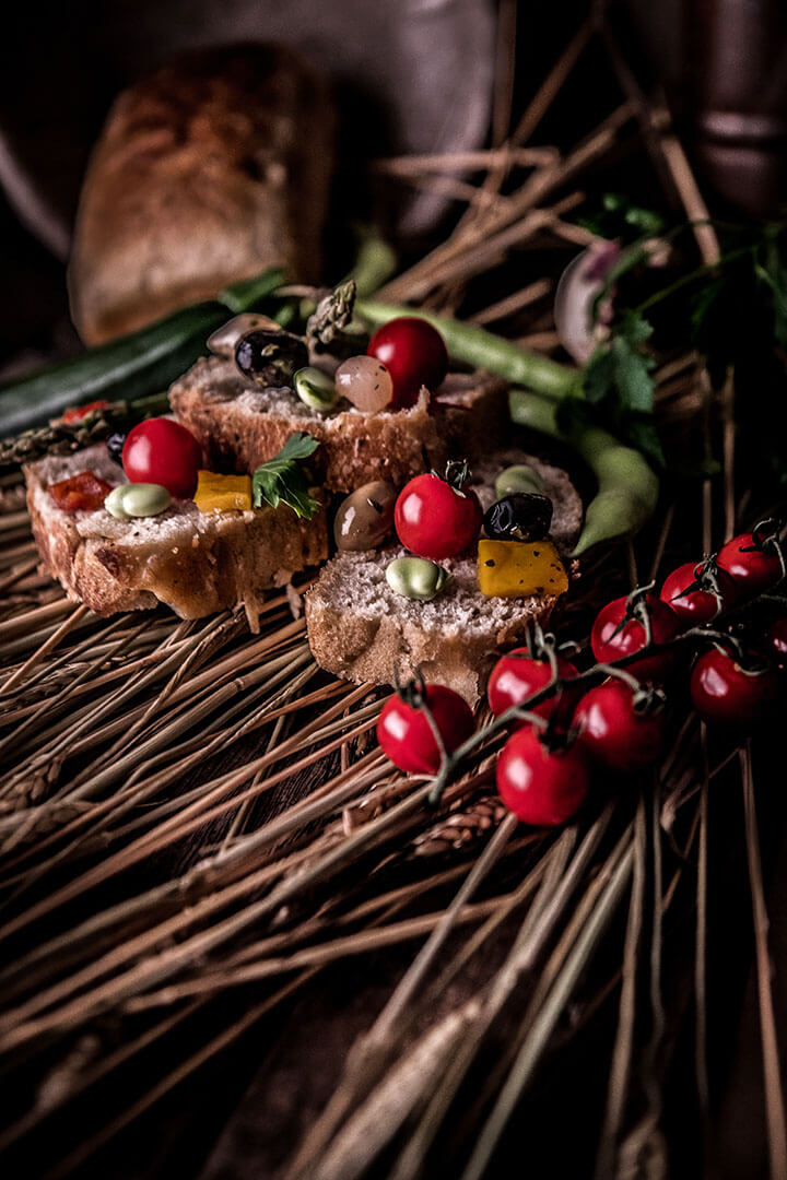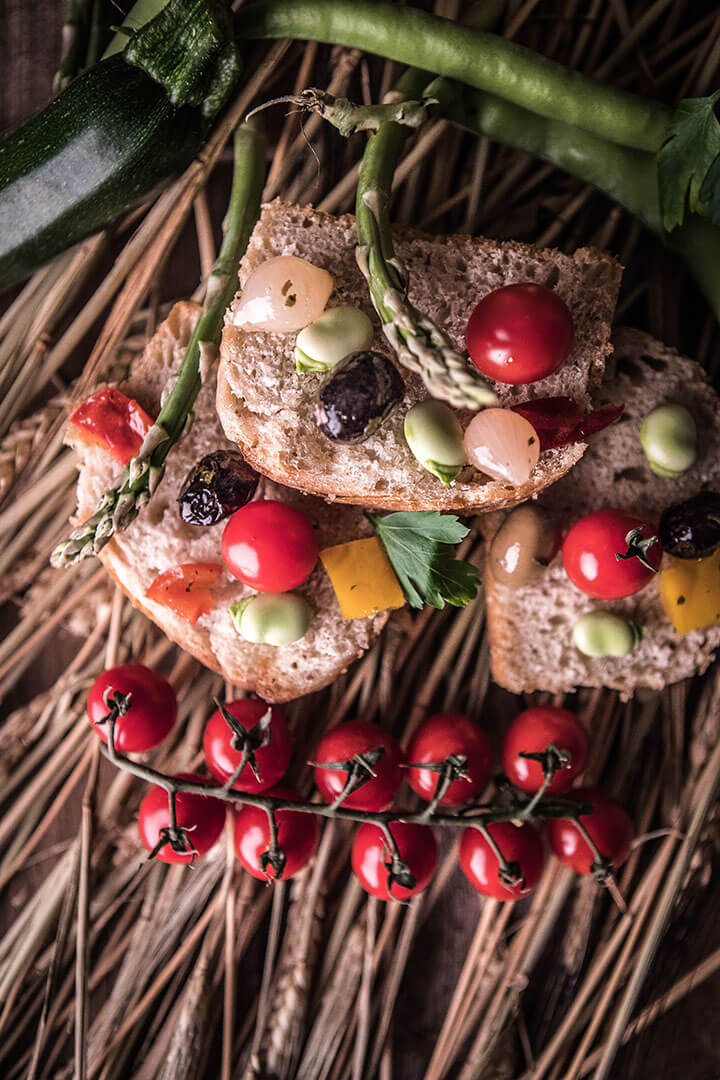 La Foccacia est préparée avec de la farine écrasée à la meule de pierre, du levain naturel (sans aucun additif de levure), de l’eau, juste ce qu’il faut de sel et beaucoup de tendresse. Bien enrobé dans un torchon, au sec et à l’abri de la lumière, elle peut se conserver jusqu’à quatre jours.