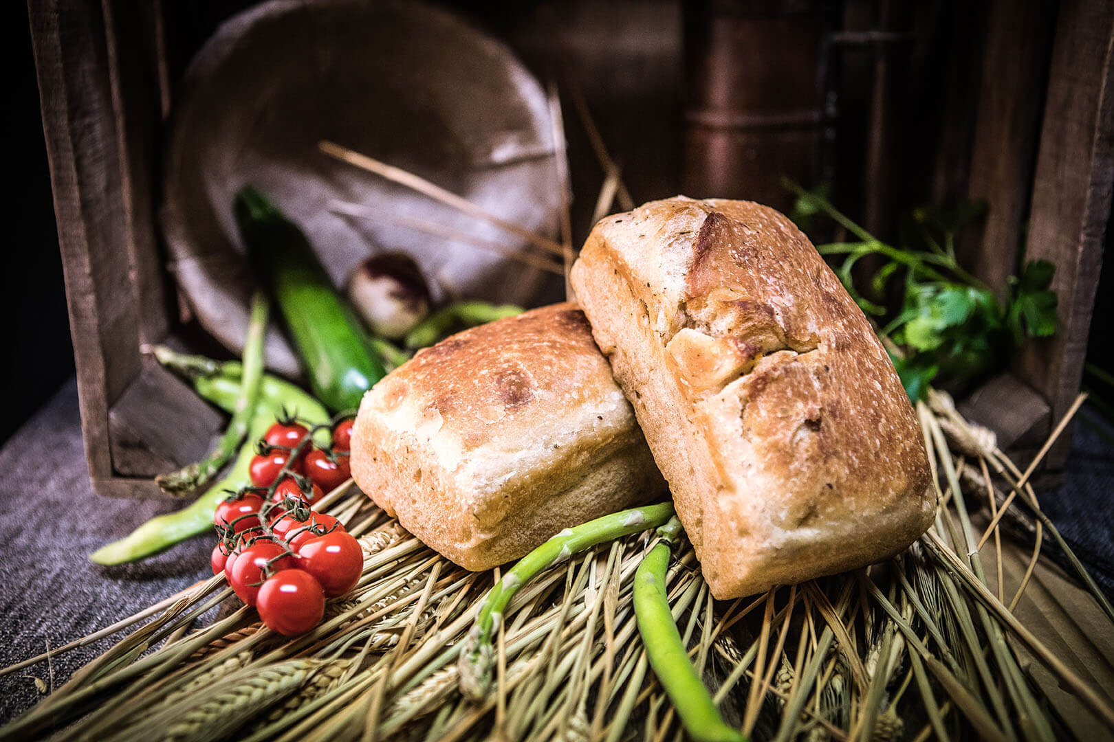 Sa très longue fermentation couplée à une utilisation économe du levain en font un pain dépourvu d’acidité. Sur une base semi-complète, enrichie d’huile d’olive bio et d’origan, “La Foccacia” révèle une mie, aux petites alvéoles, huilée et enrobée d’une croûte aux très légères saveurs de sucre roux.