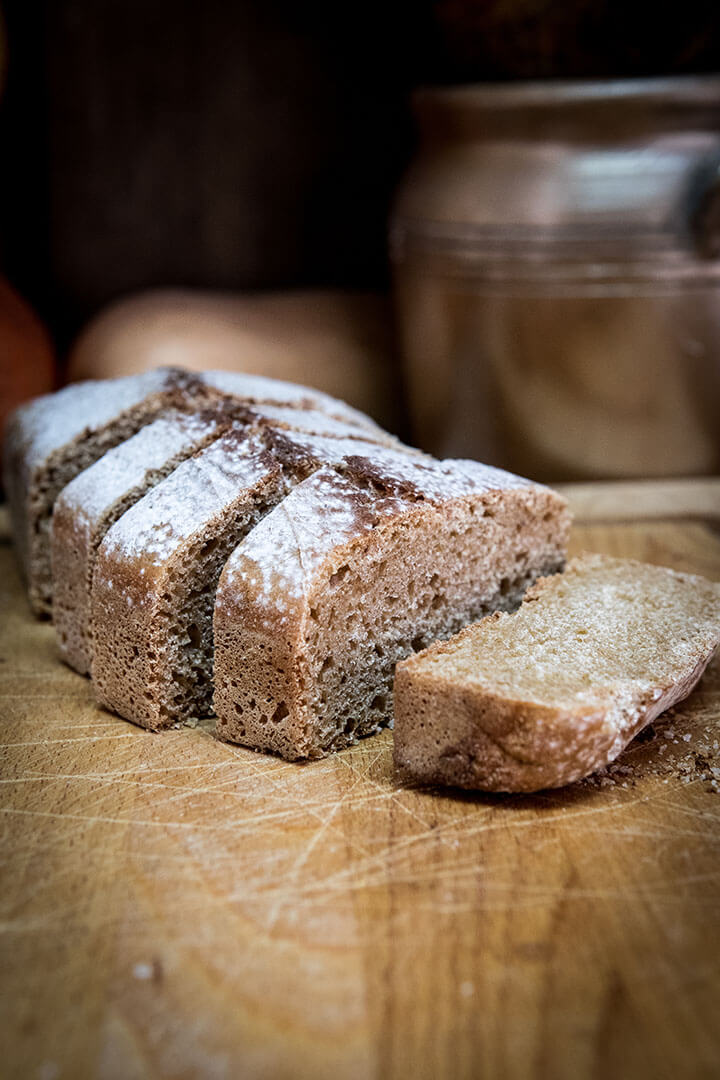 Le Pur Petit Épeautre est préparé avec de la farine écrasée à la meule de pierre, du levain naturel (sans aucun additif de levure), de l’eau, juste ce qu’il faut de sel et beaucoup de tendresse. Bien enrobé dans un torchon, au sec et à l’abri de la lumière, il peut se conserver jusqu’à quatre jours.